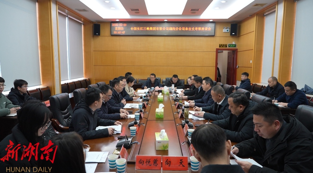 新湖南客户端2月21日讯(记者 郑湘 杨秀知)2月20日上午,湘西土家族苗族自治州古丈县委书记滕朝辉与三峡集团湖南分公司总经理金彪一行座谈,就清洁能源项目进行深入洽谈。三峡集团湖南分公司副总经理尹显俊、邓小云,县委常委、常务副县长刘学书及县直相关部门负责人参加座谈。