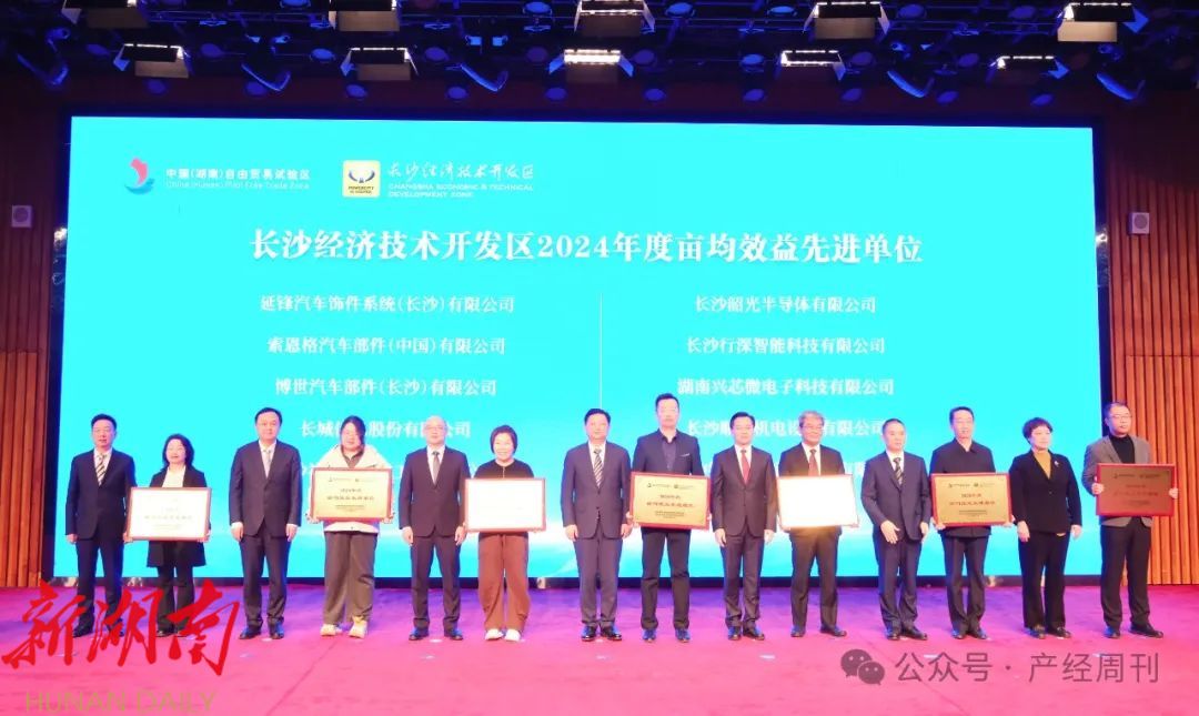 延锋汽车饰件系统(长沙)有限公司、索恩格汽车部件(中国)有限公司、博世汽车部件(长沙)有限公司、长城信息股份有限公司、长沙礼恩派拉线工业有限公司、长沙韶光半导体有限公司、长沙行深智能科技有限公司、湖南兴芯微电子科技有限公司、长沙顺高机电设备有限公司、湖南中车时代通信信号有限公司10家企业获年度亩均效益先进单位。