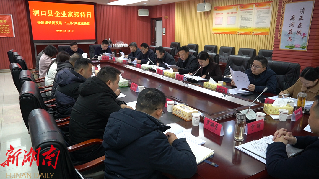 2月21日,洞口县开展2025年2月“企业家接待日”活动,本次活动主题为“提质增效促发展 ‘三外’共建谋新篇”,县委书记吴韬出席并讲话,县委副书记、统战部部长郭向荣主持。罗颢、刘玮、肖谋解、毛超林、林飞、蒋建德、唐凌峰、黄长军、宁琛等县级领导及县直部门、省市驻县单位主要负责人等参加活动。