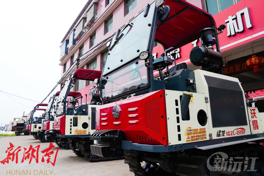 在沅江市草尾镇某农机销售门店,数台旋耕机、插秧机等农机具整齐排列,仓库内各类农机具配件应有尽有。门店负责人冯铁兵表示,他在年前就预交了1000万元给经销企业,预定了200万元农机配件和800万元农机,全力满足客户农机需求,给客户提供最好的售后服务。