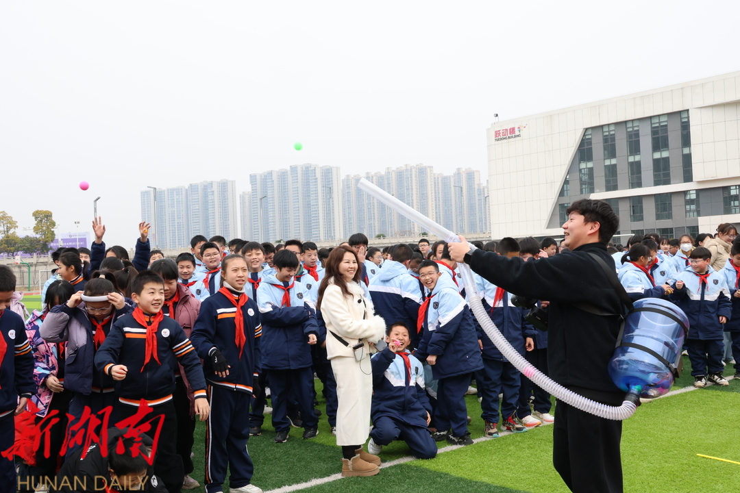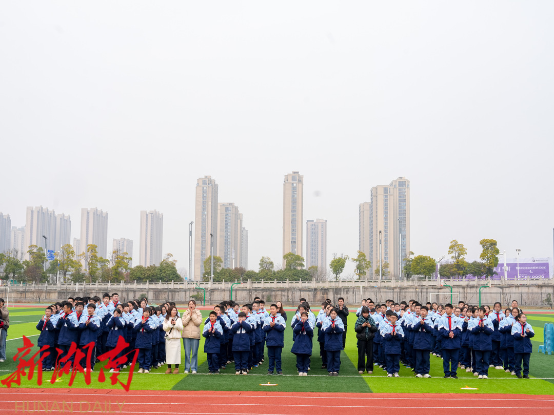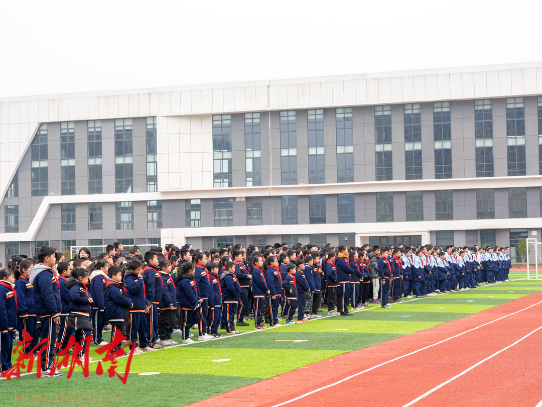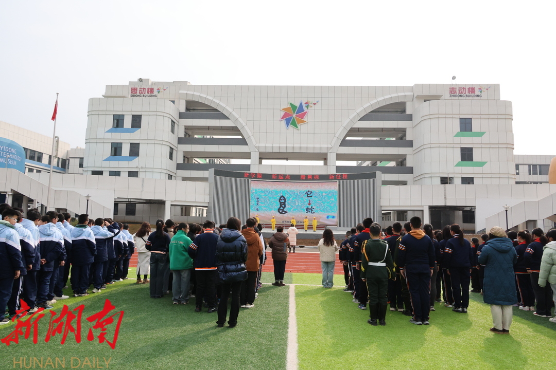 雨湖新闻网讯 (记者 陈娟 蒋恬洋 通讯员 田双)灵蛇献瑞启新程,万象峥嵘春意生。2月24日,风车坪学校举行“金蛇巳巳映朝晖,少年乘风意气扬”主题开学典礼。此次开学典礼以“金舞银蛇”为引,以“灵蛇献瑞”为线,将思政教育贯穿始终,在校长的殷切寄语中坚定弘扬抗战精神的信念,在湘钢高工的故事中弘扬科技强国的创新精神,在明星中队和辅导员身上汲取力量、涵养奋斗品格,在《少年乘风》中唱响报国强音。