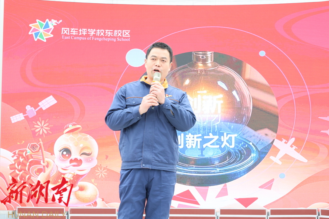 全国五一劳动奖章获得者、湖湘杰出工匠、湘潭钢铁集团焊工首席技师欧勇老师点亮“创新之灯”。