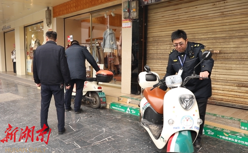 在九嶷中路、文庙广场、文庙路,县城管执法局舜陵中队和文庙中队组织执法人员对辖区内的两轮车辆停放秩序和沿街商铺占道堆物等经营秩序进行规范整治。执法过程中,执法人员采取“柔性”执法,以“教育为主、处罚为辅”,对占道经营、店外乱堆乱放等情况的商户进行了宣传教育,并协助商户将占路商品整理搬离,做到文明经营,对未在停车区域停放的非机动车摆放整齐。对群众不文明、不规范停车行为进行现场纠正,引导大家将两轮车按顺序摆放在规定区域。