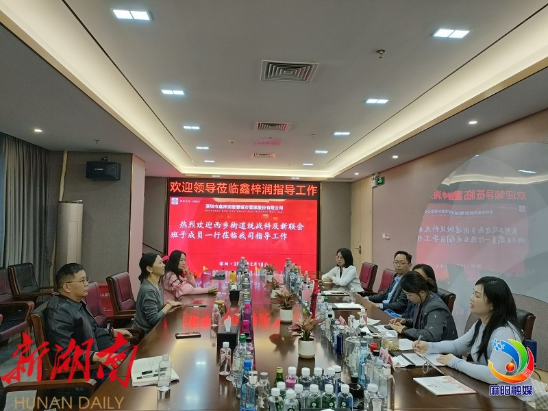 2月18日,深圳市宝安区西乡街道统战科、新阶联及商会代表一行应邀到深圳市湖南麻阳商会及会长单位鑫梓润智慧城市管家股份有限公司,开展以“跨区域统战协作、资源共享促发展”为主题的交流活动。这是麻阳为深化跨区域统战工作协同发展,助推"湘商回归"工程实施迈出的实质性步伐。