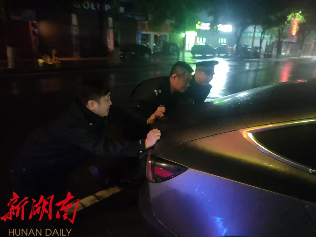 2月22日凌晨,在潇水中路路段,一辆粤B牌照的新能源电动车行驶途中突然没电,停在马路中间无法前行,一名男子满脸焦急手足无措地站在车旁,幸遇民辅警及时援助。据了解,该男子姓唐,从广东出发路过湖南,下高速寻找充电桩进行充电,由于对路线不熟导致对路程估算不足,所以在寻找充电桩的过程中车辆电量耗尽无法行驶。此时天空下着小雨,为了避免造成交通事故和保护驾驶员的人身安全,徐家井派出所值班民警立即上前进行救援,人力将车推行至临近的太古酒店充电站进行电量补充。