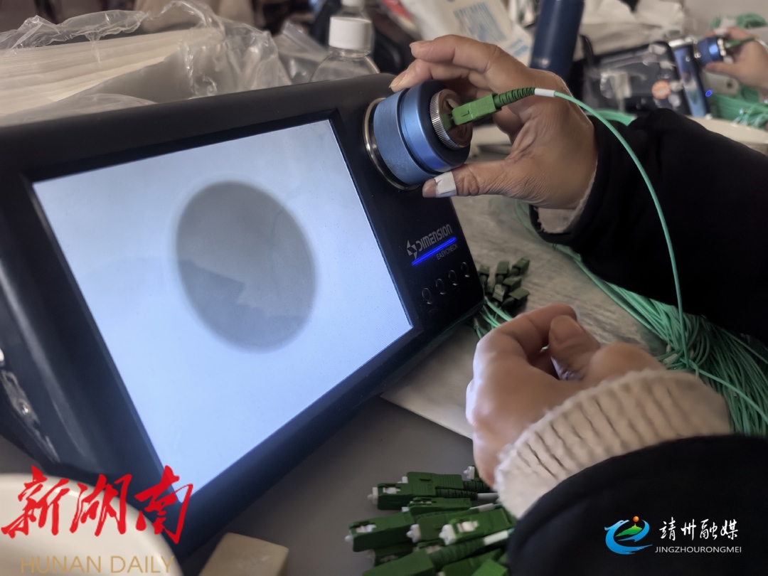 300余平米的车间里,女工们手法娴熟地开展光纤端面的研磨、检测等制作流程,一片热闹繁忙的景象。