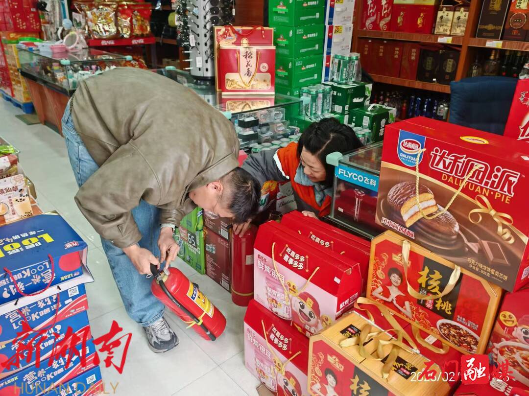 检查过程中,工作人员对辖区内烟花爆竹零售点进行细致检查,重点查看经营许可证是否齐全、烟花爆竹储存是否规范、消防器材是否配备到位、安全警示标志是否醒目等。针对部分零售点存在的货物堆放杂乱、灭火器过期等问题,检查人员现场提出整改意见,并要求经营者立即整改,严格落实安全主体责任,确保烟花爆竹销售、储存环节安全无虞。随后,检查组深入辖区大型超市,重点检查消防通道是否畅通、消防器材是否配备到位、电气线路是否符合规范等消防安全隐患。同时,对超市内销售的冷藏食品、散装食品等进行抽查,查看食品进货台账、保质期等,严防过期、变质及“三无”食品流入市场,确保群众“舌尖上的安全”。