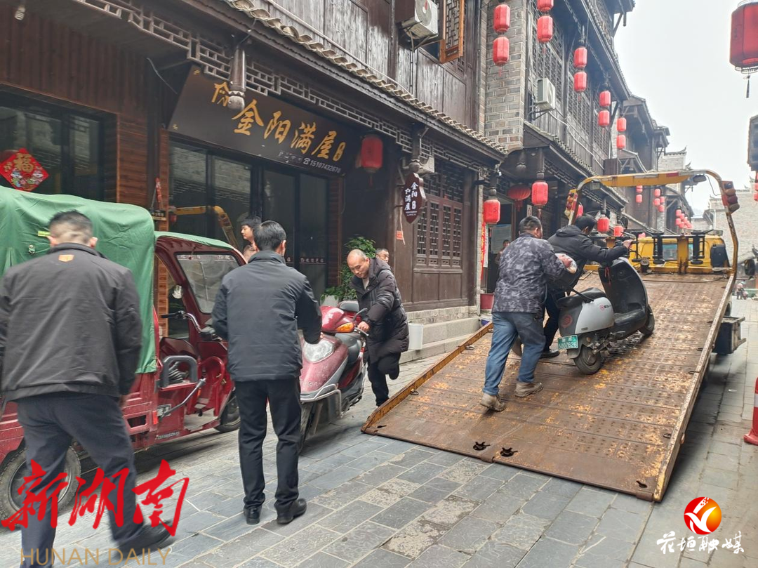 整治现场,工作人员按照“边查、边清、边改”的方式开展消防安全检查,重点打通景区疏散通道、清理安全出口等公共区域。针对检查过程中发现的问题,第一时间与当事人进行联系,对占堵疏散通道的杂物进行清理挪移;对违规停放的机动车、电动车车主进行劝导,督促其将车辆驶离。同时,对发现占用、堵塞“生命通道”的行为及时制止和劝阻,在醒目处设置“消防车通道禁止占用”警示牌,引导车辆规范停放。