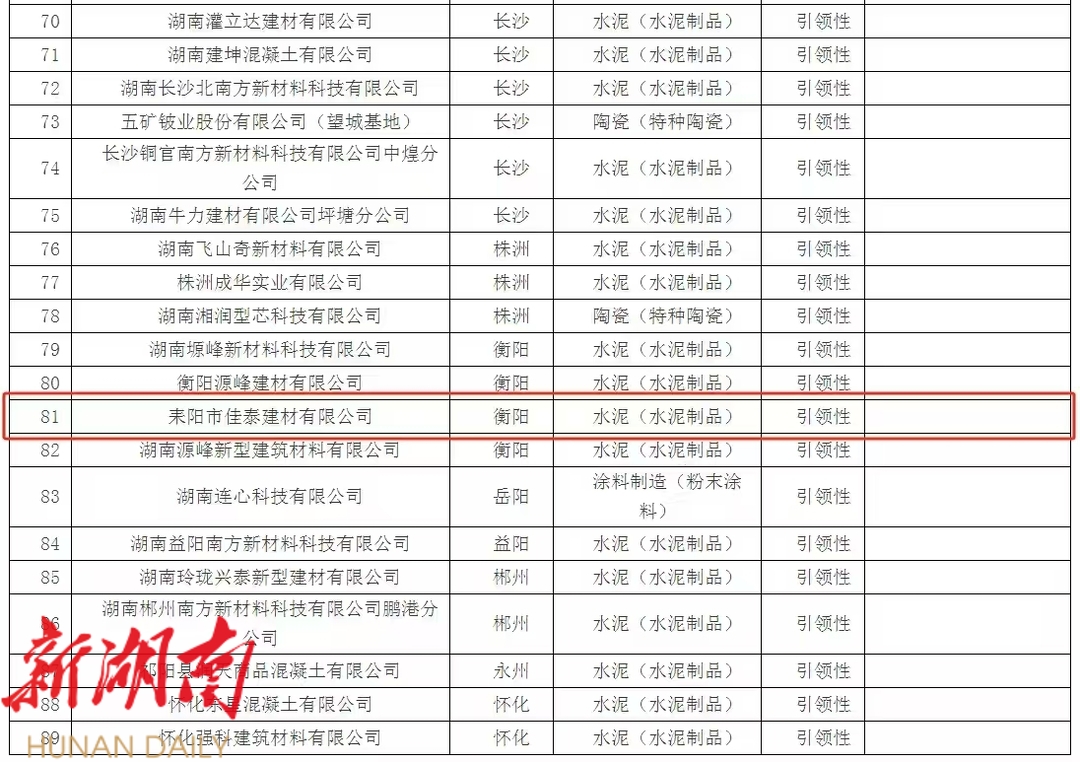 近日,湖南省生态环境厅发布《关于湖南省2024年新增重污染天气重点行业绩效A、B级及引领性企业的公告》,耒阳市佳泰建材有限公司成功入选湖南省2024年绩效引领性企业,这也是我市第一家成功创建绩效引领性企业。