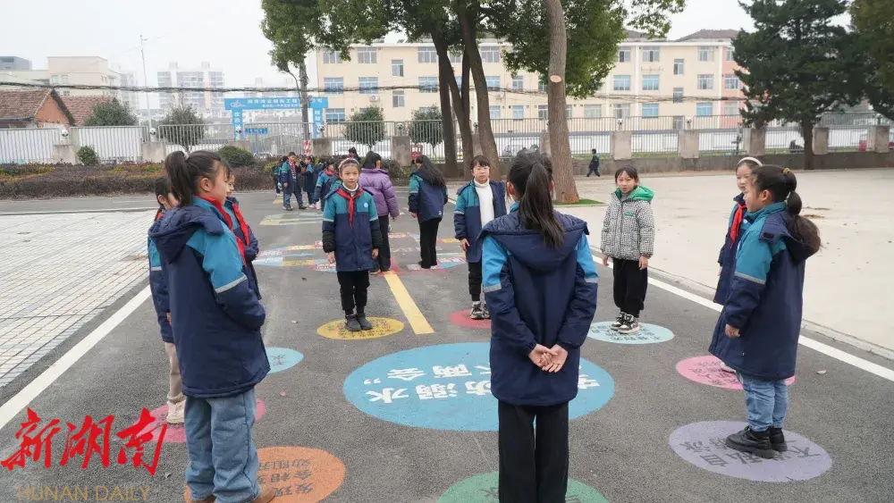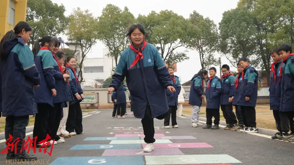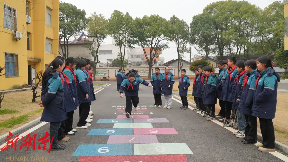 新学期对于西洞庭中心完小的同学们来说,收到的第一个好消息就是,课间活动时间从10分钟变成了15分钟,大家有了更加充裕的时间进行体育活动。校课间活动涵盖了跳房子、丢沙包、踢毽子等经典游戏,也有走迷宫、曲线跑、手脚并用、萝卜蹲等团队协作的益智项目。