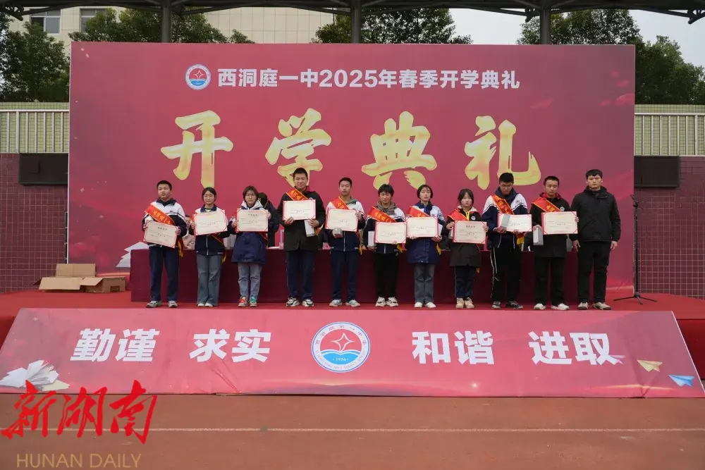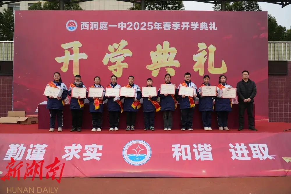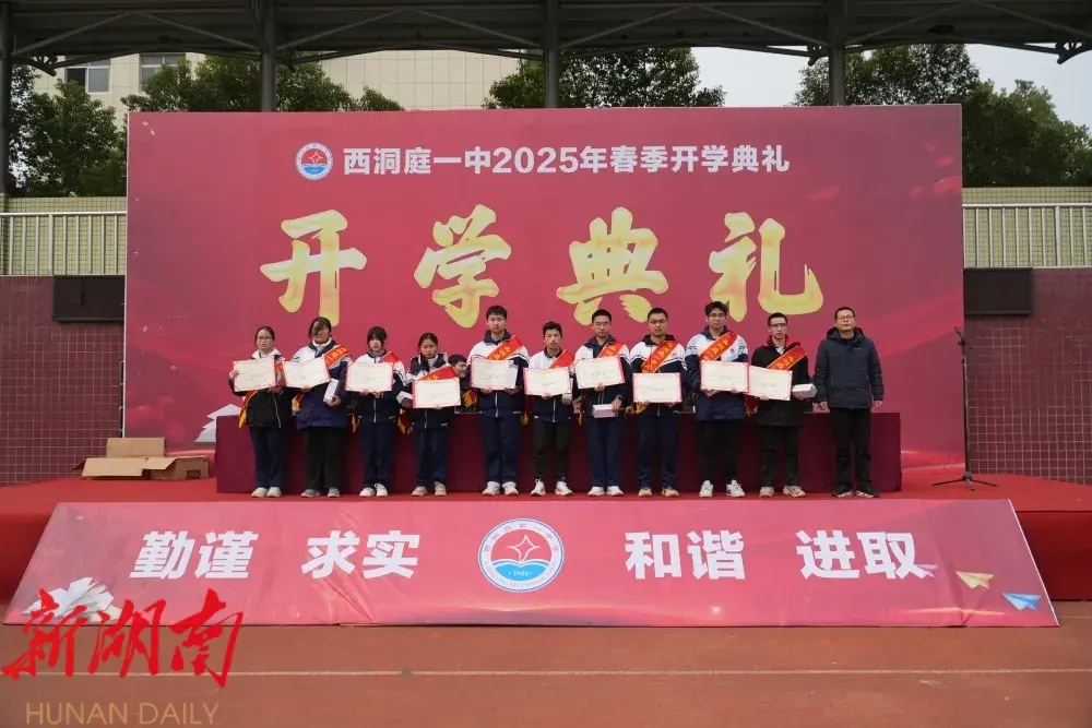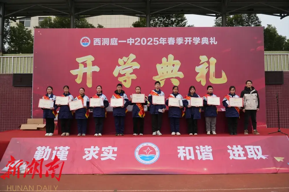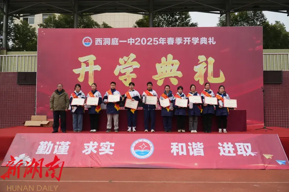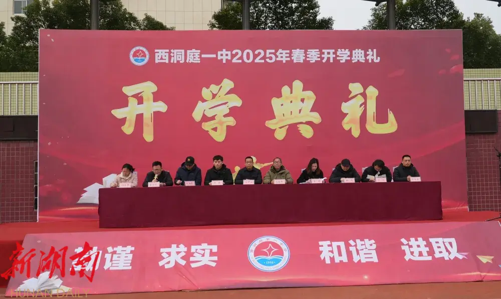 2月24日,西洞庭一中2025年春季开学典礼在学校操场举行。全体师生在国旗下迎接新学期的到来。