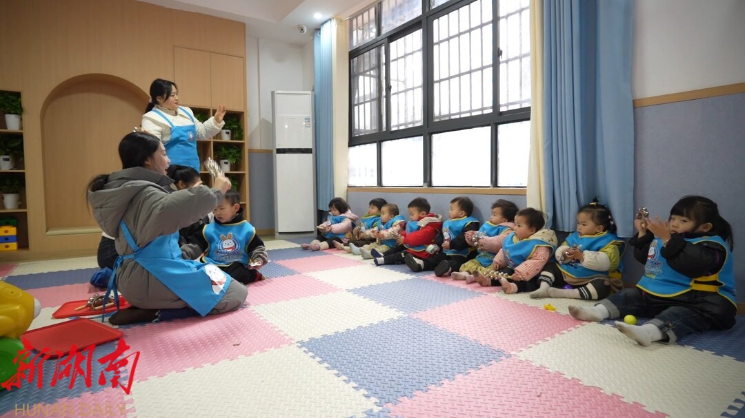 嘉禾县一鸣爱尔福托育园园长李艳三说:“我们孩子是7点半就可以入园,家长如果下班下的晚的话,我们是6点半都有我们的专业老师在这里陪伴。 ”
