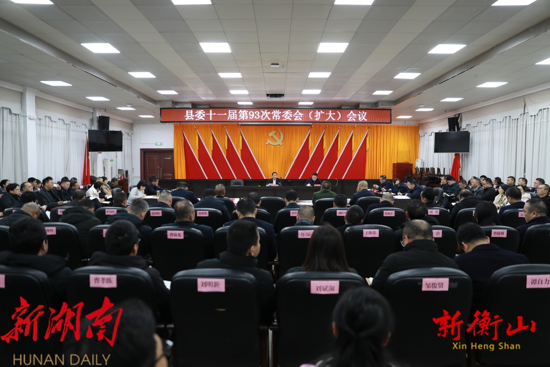 2月26日,衡阳市政协副主席、衡山县委书记戴新贤主持召开县委十一届第93次常委会(扩大)会议,传达学习习近平总书记关于巡视工作的重要指示精神,传达学习《被巡视党组织配合巡视工作规定》《党委(党组)履行巡视巡察工作主体责任清单》等文件精神,审议《衡山县配合省委巡视工作方案》《衡山县巡视整改情况汇报》,听取2024年全县国防后备力量建设情况汇报,传达学习全国、全省、全市宣传部长会议精神。