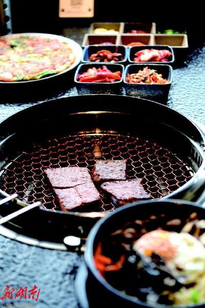 而浏阳的饮食文化,又与朝鲜族大不相同。朝鲜族人自幼便习惯于烤肉,几乎每个朝鲜族人的童年记忆中,都有着父亲在火炉上切片烤肉的场景,他们热衷于将烤肉包裹在生菜中大口大口地吃。此外,传统的朝鲜族饮食,无论是石锅拌饭、海鲜饼,还是辣年糕,口味都偏向于微甜,酱料也多为微甜或酸甜。“但浏阳人不爱吃生食,吃烤肉怕上火,喜欢吃辣而不习惯甜口。”金文杰说,他也是来到浏阳后才第一次听说“吃烤肉上火”。