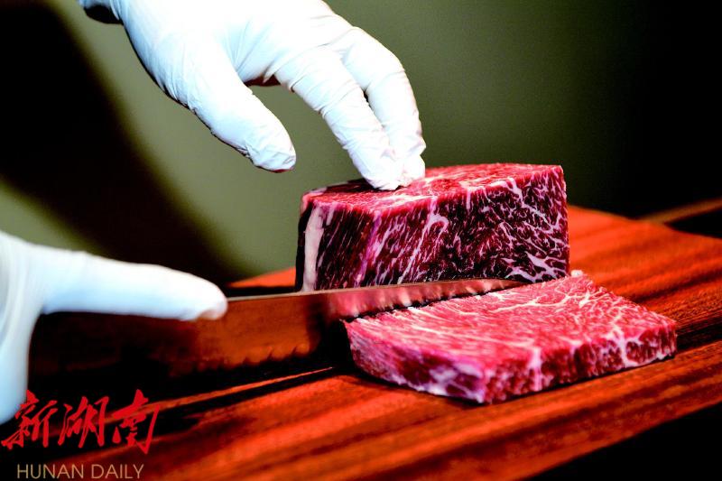 “哧……”一声清脆的炭烤声响起,和牛腹心肉逐渐变色,伴随着细碎的“滋滋”冒油声,牛肉表面绽放出诱人的色泽,香味扑鼻而来。