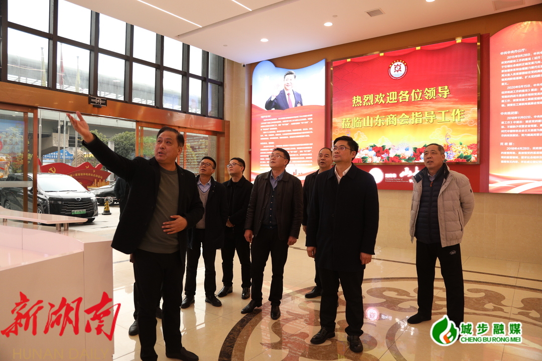 图为余勋伟一行在湖南山东商会了解商会基本情况
