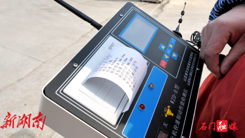 “这是昨天山东科大工程师给我们送过来的检测刹车系统的设备,然后昨天给我们进行了设备操作培训,它的最大的优点就是方便快捷,数据准确,能够让我们准确地判断农业机械有没有故障。”石门县农机事务中心农机安全监理室主任喻洪波介绍道。