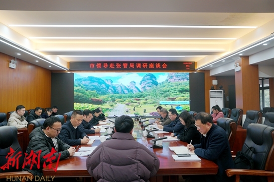 吴震琳)2月26日,市委常委、市委宣传部部长吴文海到张管局开展调研,就景区交通、旅游宣传营销、“一票制”联营、巡察整改等工作进行深入交流。张管局党委副书记、局长张冲,张管局班子成员,市文旅广体局、市交通运输局、张管局局属各单位相关负责人参加会议。