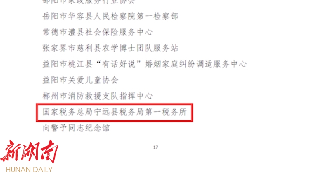 湖南日报·新湖南客户端2月27日讯(通讯员 胡俊凯 ) 日前,中国妇女网发布公示,拟表彰10位全国三八红旗手标兵、600位全国三八红旗手、396个全国三八红旗集体、600个全国巾帼文明岗。在此次评选中,国家税务总局宁远县税务局第一税务所拟表彰为“2024年度全国巾帼文明岗”。