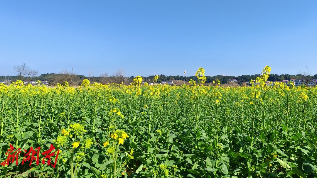 新洞口客户端2月27日讯(记者:胡涛) 2 月27日下午,记者走进毓兰镇双桂村连片的油菜花田中,放眼望去,金黄色的油菜花海在阳光下熠熠生辉,犹如一幅绚烂的画卷,美不胜收,为早春时节增添了一道独特的风景线。