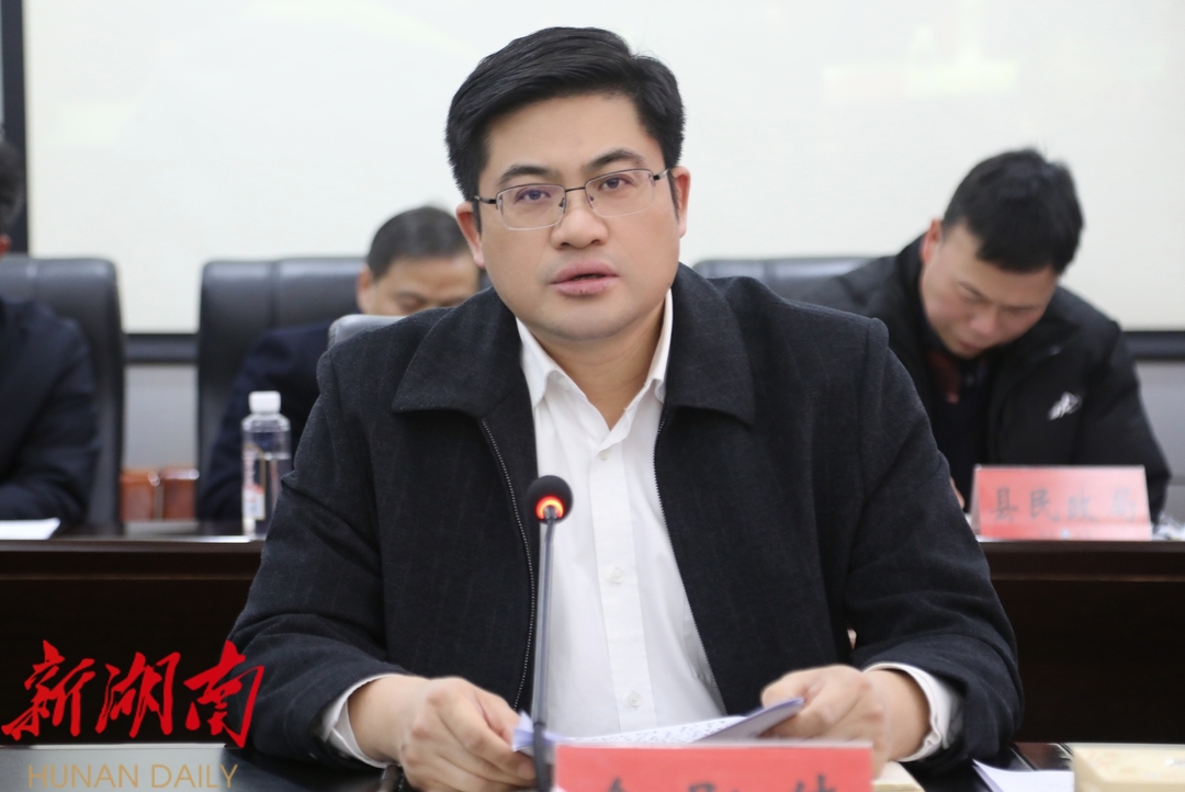 图为邵阳市人民政府党组成员、副市长、城步县委书记余勋伟在会上讲话