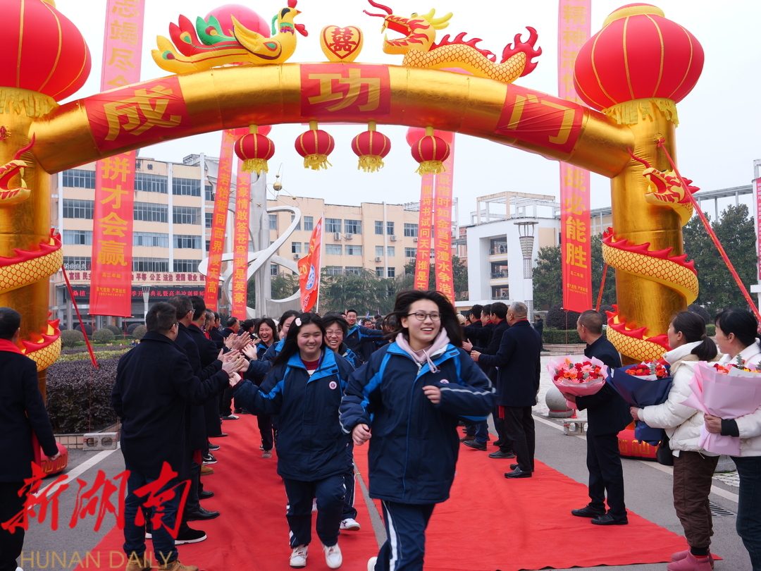 锦绣前程快马驰,金榜题名正当时。典礼最后,全体高三学生依次跑向“成功门”,校委会成员和高三全体教师在两旁为学子们加油鼓劲,学生们精神抖擞、意气风发,展现了青春风貌。