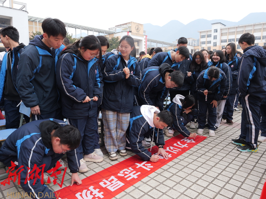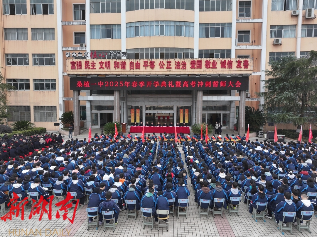 湖南日报·新湖南客户端2月27日讯(记者 杨柳 瞿桂林)“为上高校圆梦想,整行装,挥笔忙!”2月27日,桑植一中2025年春季开学典礼暨高考冲刺誓师大会举行,高三学生的集体宣誓将大会推向高潮。