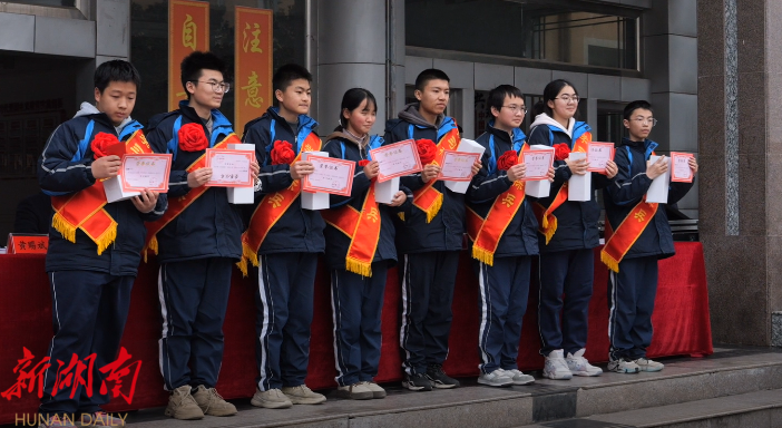 在桑植一中校园广场,全校师生齐聚一堂,共同开启新学期征程,为高三学子加油鼓劲,吹响高考冲刺的号角。典礼首先为优秀班主任、学习标兵等先进个人颁奖,树立榜样、激励奋进。随后,高三教师代表和学生代表依次上台发言,为冲刺高考加油打气。“愿我们以静默的努力,将焦虑化作激励,让梦想的火焰永不熄灭!”高三学生代表李彦希表达了对高考的必胜决心,引发了现场学生的共鸣。
