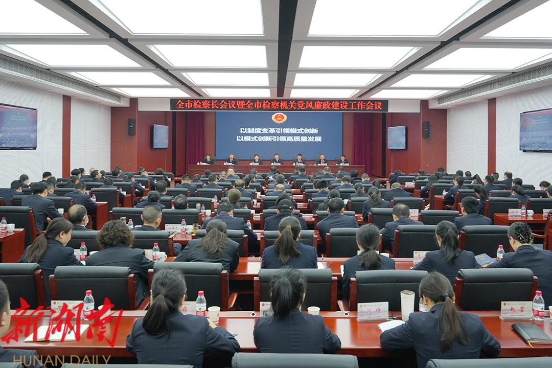 会议指出, 2025年,全市检察机关要坚持以习近平新时代中国特色社会主义思想为指导,深入贯彻习近平法治思想和习近平总书记对政法工作、检察工作、湖南工作重要讲话重要指示精神,全面贯彻党的二十大和二十届二中、三中全会精神,把思想和行动统一到 中央、 省委、市委和上级检察机关的决策部署上来,做实高质效办好每一个案件,突出基层基础和基本能力建设,进一步转作风、强素能、提质效、树品牌,以制度变革引领模式创新、以模式创新引领高质量发展,为湘潭在进一步全面深化改革、谱写中国式现代化湖南篇章中勇当先锋贡献检察力量。