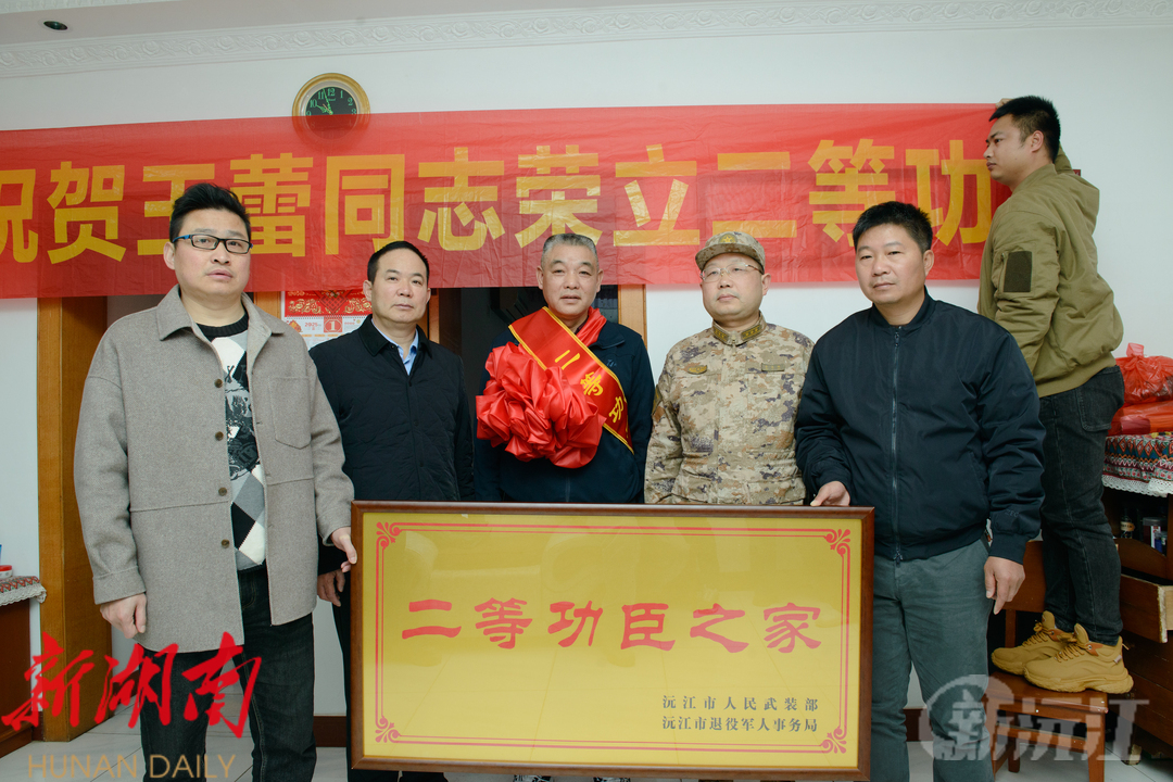 新沅江客户端2月28日讯 (记者 黄曦 李咏澎) 2 月 28 日,沅江市人武部、退役军人事务局、琼湖街道办事处的工作人员,先后来到王蕾、肖平家中,为其家属分别送来“二等功”和“二级表彰先进个人”喜报及牌匾,并向他们家属表示热烈祝贺和亲切慰问 。市委常委、人武部长彭达明参加活动。