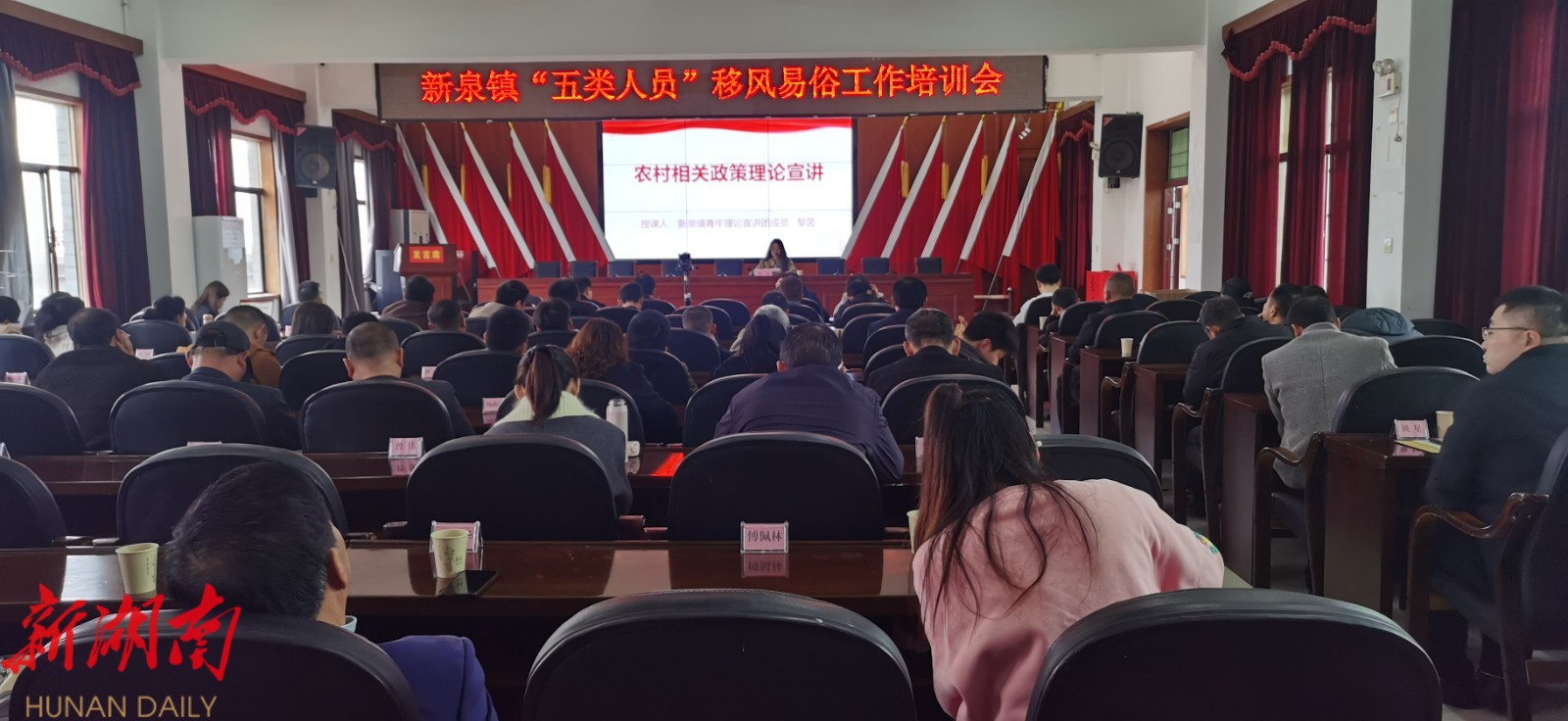 湖南日报·新湖南客户端2月28日讯(通讯员 黎茵) “移风易俗工作势在必行,作为党员,我肯定要带头响应!” 2月28日,湘阴县新泉镇以党员冬春训活动为契机,组织党员干部、村(社区)骨干、乡贤代表等180余人,召开“五类人员”移风易俗专题培训会,旨在凝聚党群合力,为基层治理注入文明新风的“强心剂”。