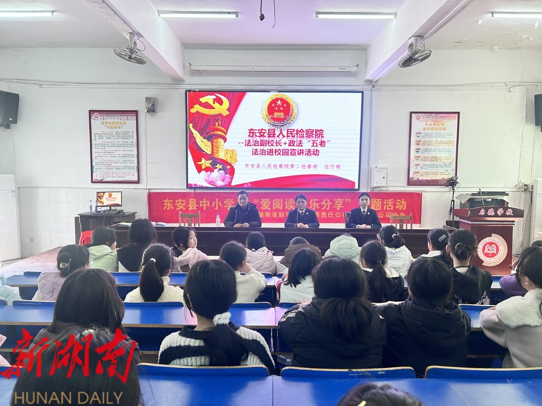 新湖南客户端2月28日讯 (通讯员 周增艳 刘湘梅)2月27日,东安县启德学校举办“法治进校园,利剑护童年”专题教育 讲座。县检察院法治副校长及政法“五老”代表,为1500余名师生开展法治宣讲。