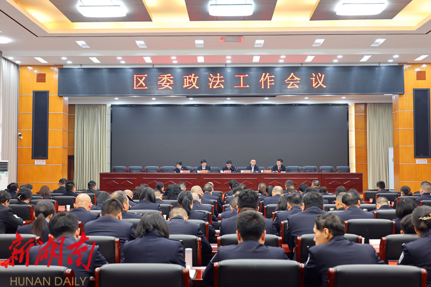 陈小平强调,一要强化政治引领。 要认真贯彻中央、省委、市委政法工作会议决策部署,坚持人民至上的根本立场,强化安全稳定的底线思维,掌握打防结合的工作方法,以一域之稳服务全市之安。二要强化争先创优。 成绩的取得,离不开全区政法各部门与广大政法干警的团结拼搏和辛勤付出。2025年,大家要再接再厉,勇挑大梁、真抓实干、争当先锋,推动工作再上新台阶。三要强化形势研判。 当前,雨湖区在扩大社会参与、协调社会利益、防范社会风险、化解社会矛盾、维护社会稳定等工作面临系列新挑战。四要强化风险防范。 要增强风险意识,持续开展“化解矛盾风险 维护社会稳定”专项治理行动,深入排查矛盾纠纷和风险隐患,力求做到底数清、情况明、措施实,做到突出排查重点、加强分析研判、注重问题化解。五要强化问题整治。 要坚持“安全第一、预防为主、综合治理”的方针,牢固树立“隐患就是事故”的理念,狠抓风险隐患整治,筑牢安全防线。六要强化源头治理。 要坚持以人民为中心的发展思想,努力让人民群众成为最大参与者、最大受益者、最终评判者,要坚持“三治融合”,要畅通交流渠道,注重多方联动。七要强化法治护航。 要发挥法治护航民生的重要作用,关注民生热点难点,加强对弱势群体的法律保护,提升群众安全感。要发挥法治护航发展的重要作用,把打造“三个一流”环境作为关键任务。八要强化队伍建设。 要着力提升新时代政法干警的能力和素质,努力打造一支让党放心、让人民群众满意的高素质执法队伍,要突出能力建设,加强工作合力,全面从严治警。