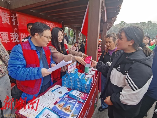 雨湖新闻网讯 (通讯员 谷穗)为进一步净化社会文化环境,保护知识产权,维护文化安全,推动“扫黄打非”工作在基层落地落实,2月28日,窑湾街道以“在雨湖感受幸福——我爱湘潭我的家”雨湖区2025年学雷锋志愿服务活动为契机,组织各社区新时代文明实践站志愿者集中开展“扫黄打非”宣传活动。活动旨在引导辖区居民树立自觉抵制各类非法出版物和有害信息的意识,倡导广大居民积极参与“扫黄打非”工作,共同投身文明社会建设。