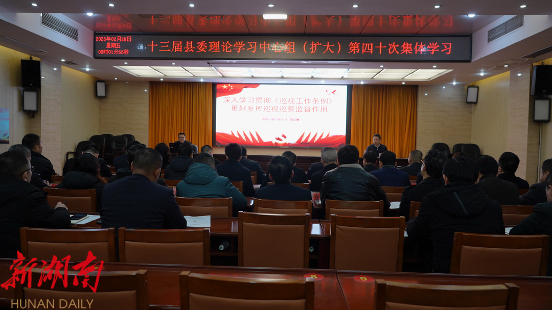 新湖南客户端2月28日讯(记者 杨秀知)2月28日,十三届县委理论学习中心组(扩大)举行第四十次集体学习,深入学习贯彻习近平总书记关于巡视工作的重要论述,发扬斗争精神,把握监督重点,发挥政治巡视利剑作用,以全面从严治党引领保障县域高质量发展。湘西土家族苗族自治州古丈县委书记滕朝辉主持并讲话。