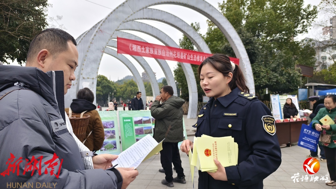 向市民发放《湘西土家族苗族自治州花垣县矿山生态修复条例》