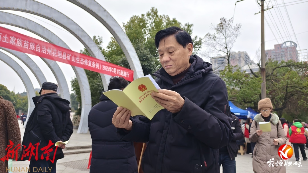 市民认真阅读《湘西土家族苗族自治州花垣县矿山生态修复条例》