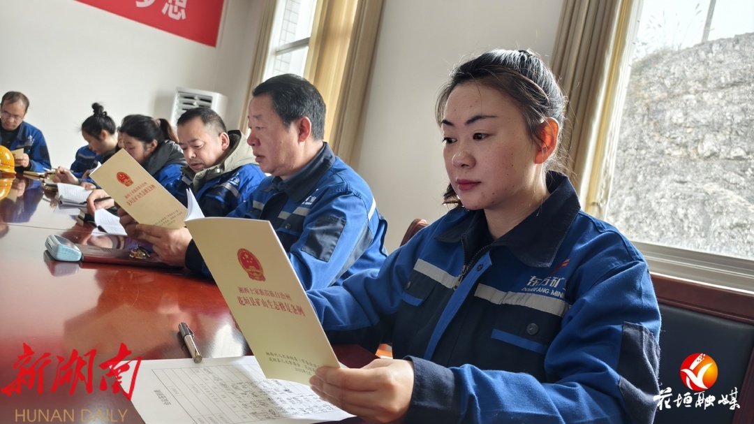 员工仔细阅读《湘西土家族苗族自治州花垣县矿山生态修复条例》