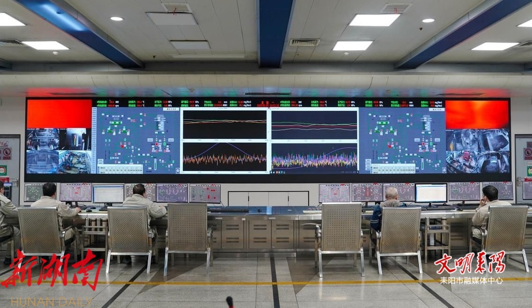 走进耒阳发电集控中心,巨型电子屏实时跳动着机组运行参数,智能监控系统织就全天候安全防护网。这里不仅是电力生产的“智慧大脑”,更是能源保供的“前沿哨所”,工作人员在控制室内即可对全厂设备运行进行实时控制和监测。