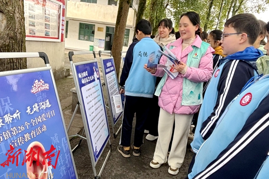 为进一步宣传和普及爱耳护耳知识,督促青少年养成健康用耳习惯,近日,桃源县剪市镇社会事务综合服务中心组织志愿者在剪市镇中学开展了“健康聆听 无碍沟通”爱耳日主题宣传活动。