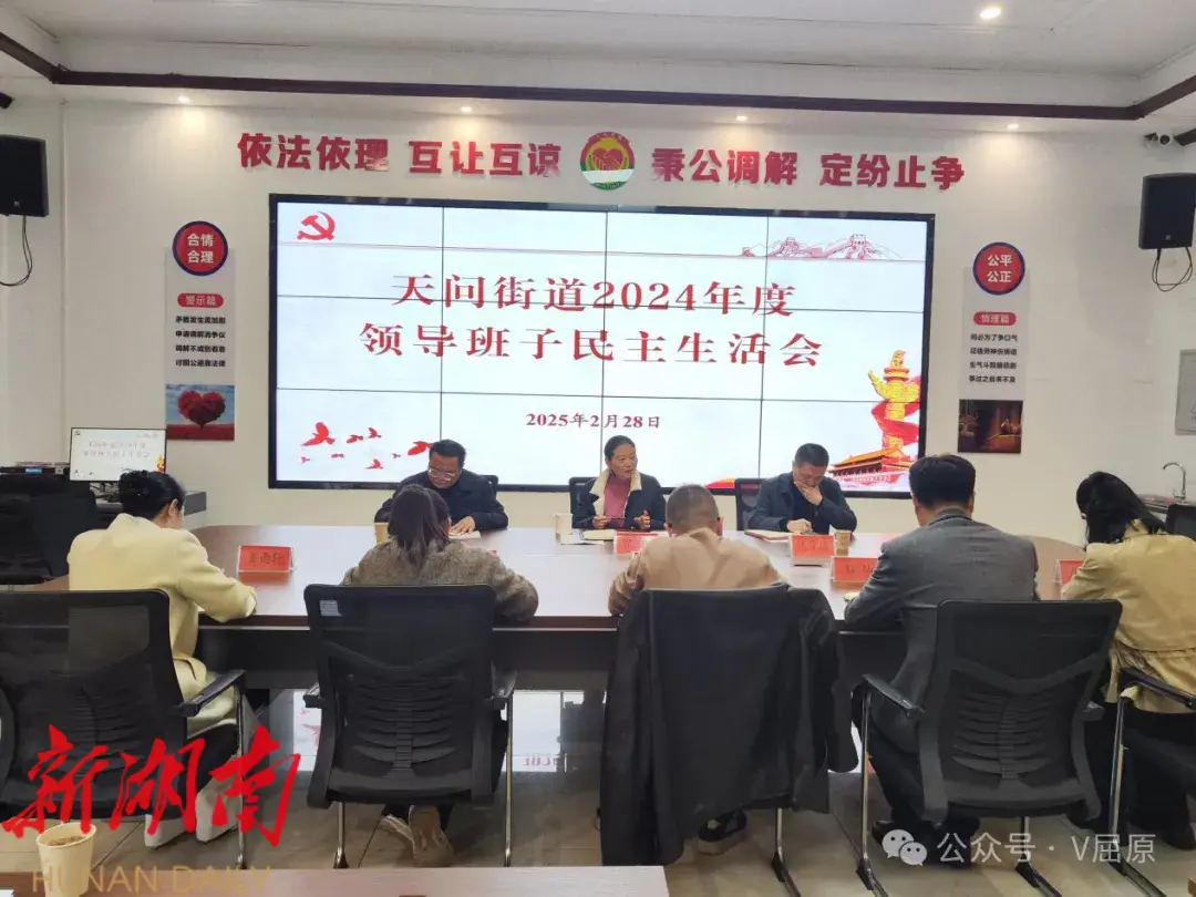 湖南日报·新湖南客户端3月4日讯(通讯员 黄芊)2月28日下午,天问街道在智慧大厅召开2024年度领导班子民主生活会,全体班子成员参加。会议以深入学习贯彻习近平新时代中国特色社会主义思想,巩固深化党纪学习教育成果,综合发挥党的纪律教育约束、保障激励作用,为进一步全面深化改革、推进中国式现代化提供坚强纪律保证为主题,街道主要负责人主持并代表街道领导班子作表态发言,区人大政协工委主任曾兰芝、区党委组织部相关负责人到会指导。