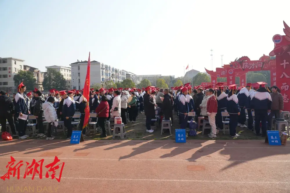 为进一步激发高三全体师生奋战高考斗志,提振备战高考精神, 2月27日,西洞庭一中在操场上举行了2025届高三年级成人礼暨高考百日誓师大会。