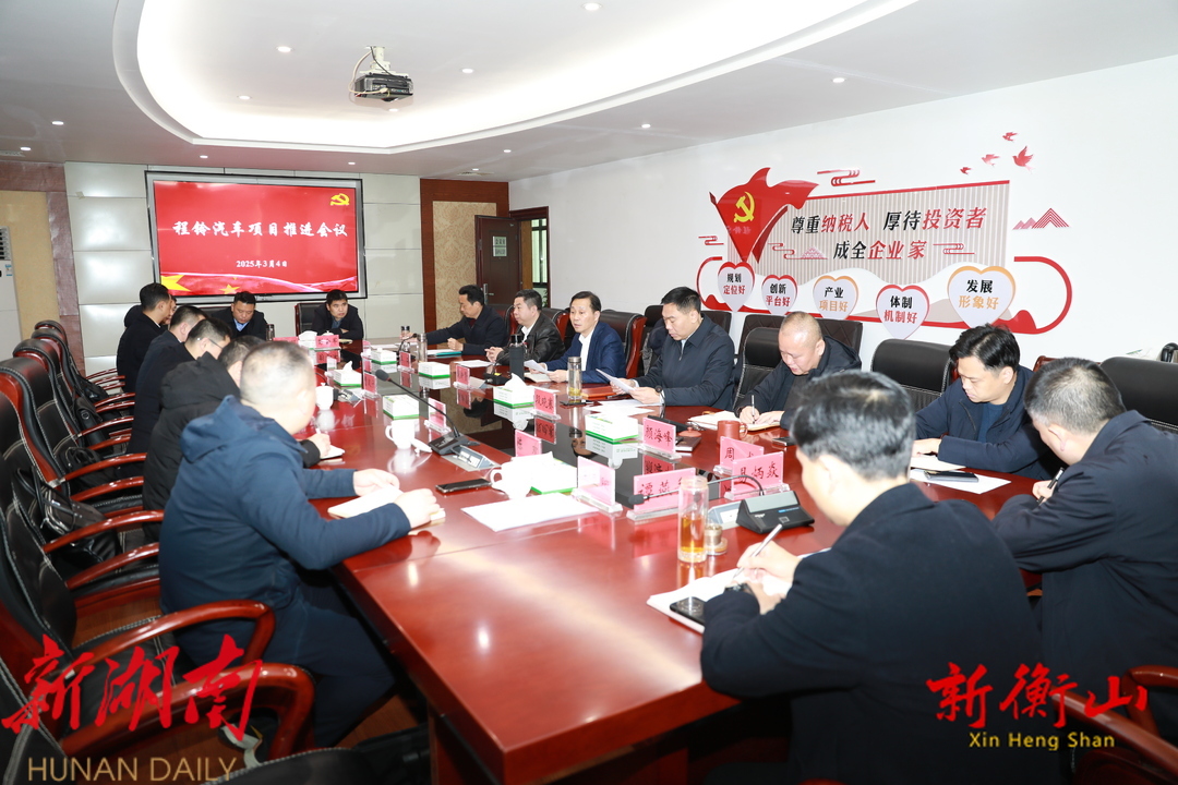 3月4日,衡阳市政协副主席、衡山县委书记戴新贤主持召开程铃汽车项目推进会。他强调,要深入学习贯彻习近平总书记在民营企业座谈会上的重要讲话精神,全力以赴做好项目建设的“服务员”,真正做到厚待投资者、成全企业家。县委副书记、县长段晓赛出席会议。