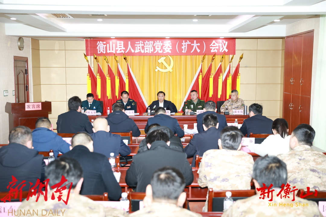 3月4日,县人武部党委(扩大)会议召开,传达学习衡阳市警备区党委全会精神,全面总结2024年工作,安排部署2025年任务。衡阳市政协副主席、衡山县委书记、县人武部党委第一书记戴新贤出席会议并讲话。
