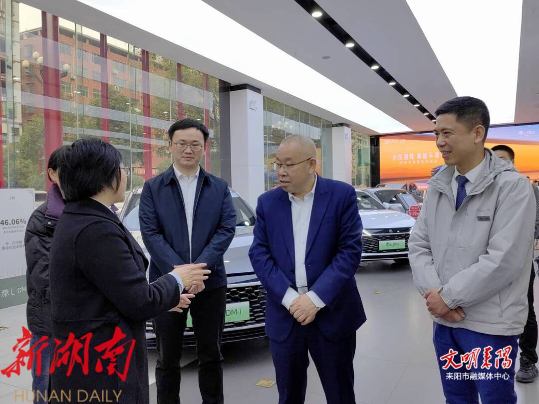 衡阳瑜迪(耒阳店)汽车销售服务有限公司、耒阳市鼎发汽车贸易有限公司的主营业务都是汽车新车零售与新能源汽车整车销售,受国家“两新”政策及新能源汽车车辆购置税减免等优惠政策的影响,我市新能源汽车销量持续走高,市场反响热烈,公司迎来发展新机遇。尹立鑫先后来到两家企业,参观了新能源汽车展厅,了解企业运营情况,对企业提出的加快国补手续审核等诉求现场交办,要求相关部门主动服务、靠前服务,加快流程审批速度,确保党的各项政策能够及时落地,惠及企业和群众。他表示,在全国新能源产业快速发展的浪潮下,相关部门要进一步加大新能源汽车相关政策的宣传力度,大力倡导绿色出行,鼓励群众优先购买新能源汽车;要加快新能源充电站点建设,为群众提供更加便捷、高效的充电服务。企业要抓住当前政策利好的大好机遇,不断创新销售模式,持续激发消费需求,提升大众购买意愿。