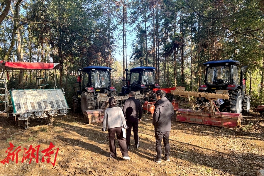 在桃源县裕农农机专业合作社,拖拉机、旋耕机、播种机、插秧机等各类大型农机具整齐摆放,该合作社负责人郭述兵和镇农业综合服务中心工作人员一起对农机设备进行隐患排查,“滤网要清洁干净,齿轮要做好润滑。”“机油、轮胎都得仔细检查,该换的都换。”工作人员一边检查一边强调。