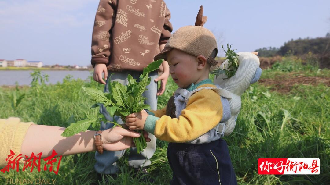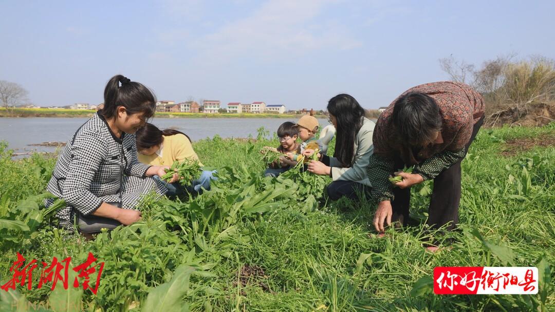 在衡阳县渣江镇秋夏村,广袤的田野里处处生机勃勃。村民屈三春带着几位从城市里来的游客前往田间地头,寻找各种宝藏春菜。经过一场春雨后,水芹菜、野芥菜、蒲公英、荠菜、野葱等野春菜纷纷冒出头来,自由生长,正是最鲜最嫩的时候。屈三春一边认真教大家分辨各类春菜,一边介绍各种春菜的营养价值。游客们个个兴致勃勃,在感受美好春光的同时,尽情享受着采摘的乐趣。