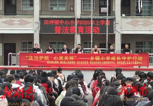 湖南日报·新湖南客户端3月5日讯(通讯员 康志威)近日,新化县田坪镇联合县公安局、人民法院、民政局、未成年人保护中心到镇中心小学举行“法治护航·心灵关怀”普法教育活动。