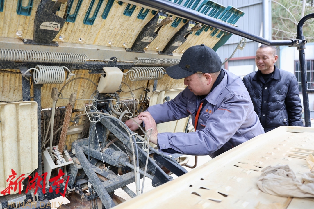 在新邵县雀塘镇半边天种养合作社,一台崭新的旋耕机刚刚送达,技术人员正手把手指导农户掌握操作要领。在该镇海鳐农机服务专业合作社,旋耕机、插秧机等各类农机具整齐地停放在机库里,农机技术人员正娴熟地为“冬眠”数月的农机具进行维修保养,检查潜在隐患问题、更换破损零部件、清洗发动机、调试各项功能,确保春耕时节农机健康“上岗”。