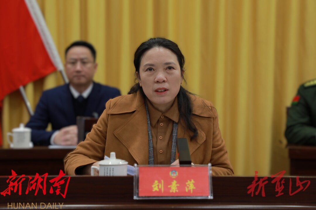 刘素萍最后说,各位委员,同志们!今年是“十四五”规划的收官之年,也是“十五五”谋篇布局之年。历史的画卷在砥砺前行中铺展,时代的华章在接续奋斗中书写。蓝山的发展未来可期,人民政协大有可为。让我们更加紧密地团结在以习近平同志为核心的中共中央周围,高举习近平新时代中国特色社会主义思想的伟大旗帜,在中共蓝山县委的坚强领导下,围绕中心,服务大局,锚定“三高四新”的美好蓝图,践行省政协“1453”履职总要求,市政协向全体委员发出的“唱响光明论,冲刺一季度”的号召,牢牢把握团结奋斗的时代要求,尽政协之责、展政协之长、倾政协之力,为奋力打造“三区一园”、推动实现“四个走在全省前列”、加快建设现代化新蓝山作出新的更大贡献!